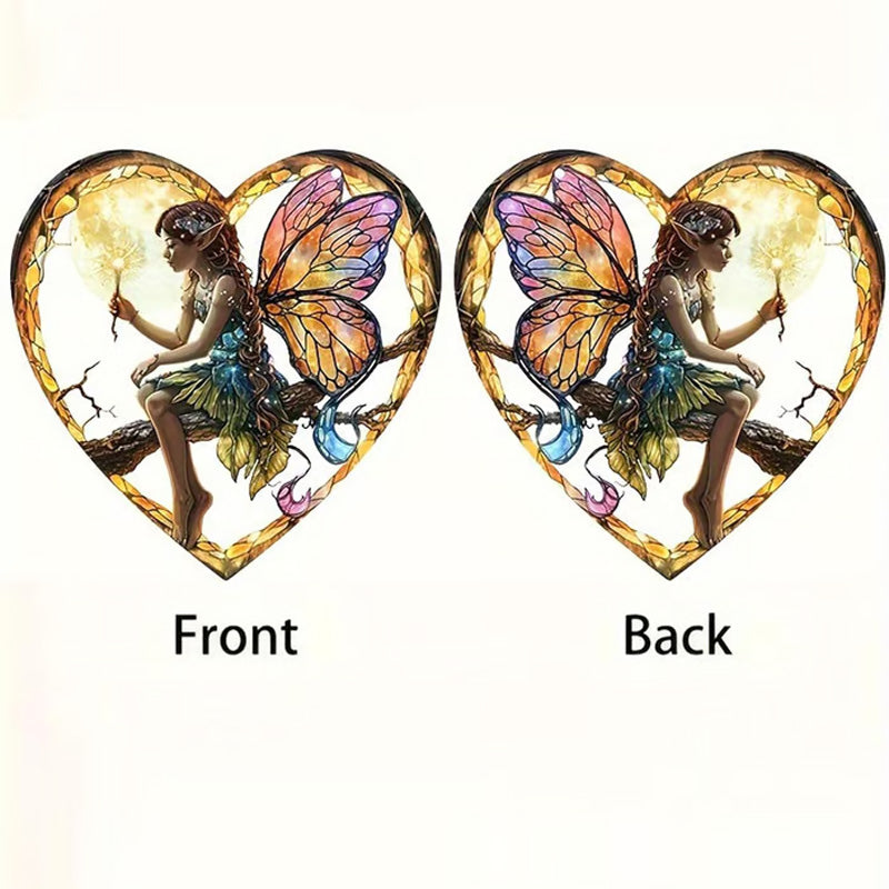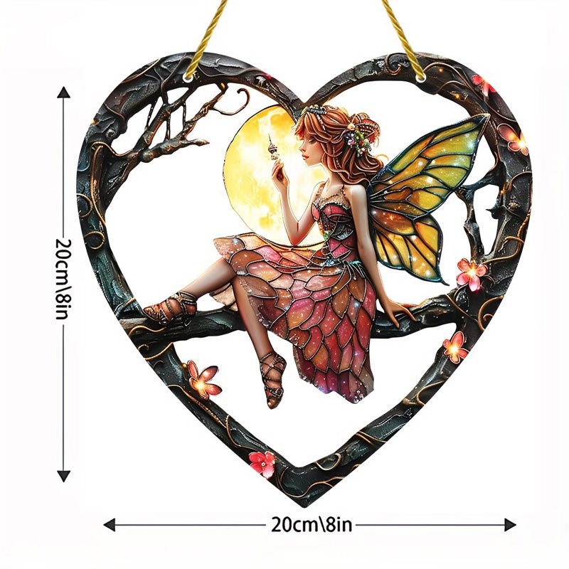 MAGISK VINDUSDEKORASJON – Denne hjerteformede, fargerike fe-ornamenten kombinerer eventyrmagi med virkelighet. Den fortryllende alven sitter på en tregren, holder en lysstråle og deler drømmer og håp.