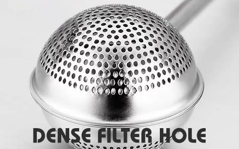 [Flere tette filterhull] Profesjonelle teinfusere kan gi en ren smak for teelskere uten forstyrrelser fra urenheter. De jevnt og tett fordelte tefilterhullene kan effektivt skille teen og vannet, og sikre at ingen rester kommer inn.